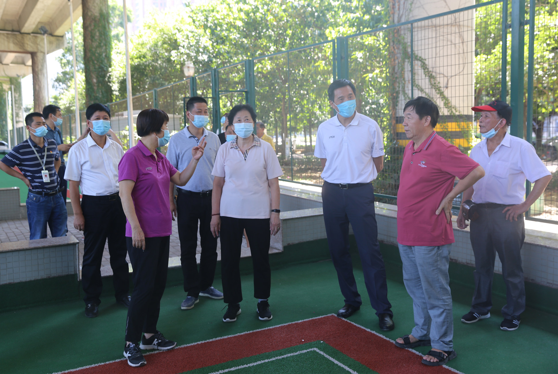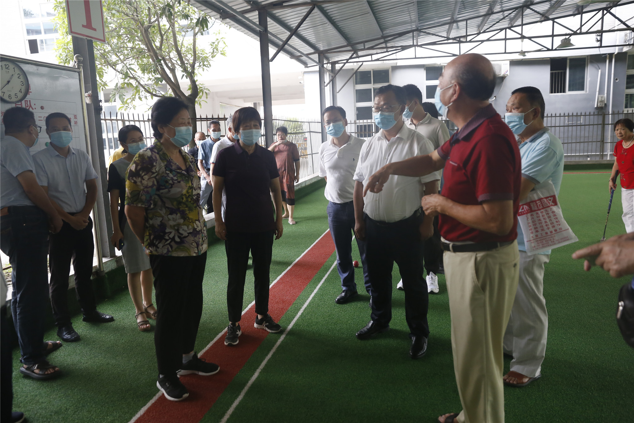 听取凤山镇凤东社区佳馨辅导站门球场地情况介绍