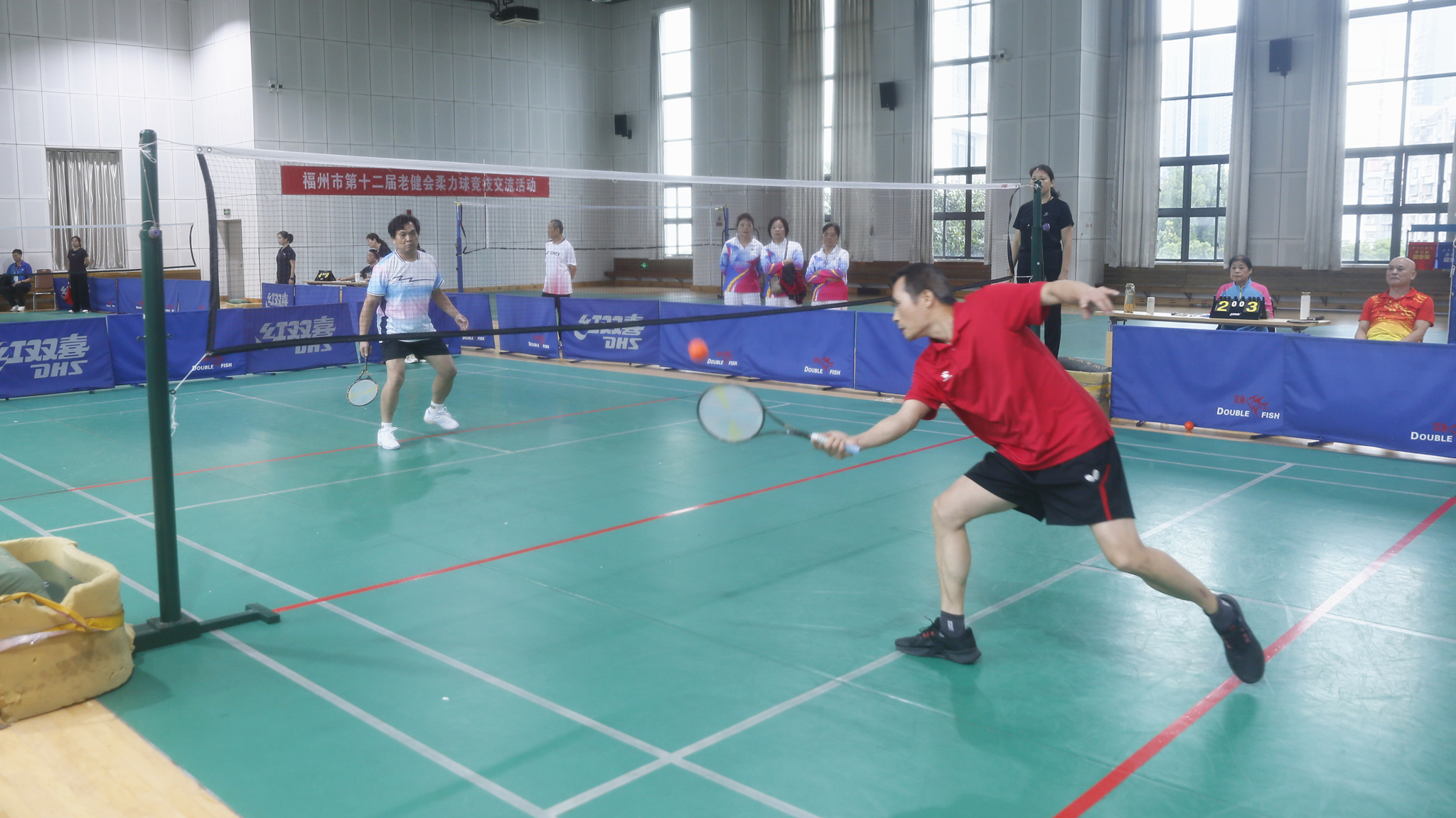 次日进行的柔力球竞技交流为个人赛,设男子单打和女子单打两个项目,共有20名运动员参与。选手们步法灵活、身姿舒展,发球、接球、击球,每个动作流畅自然、刚柔并济,充分展现了娴熟的技巧与对柔力球运动的热爱。