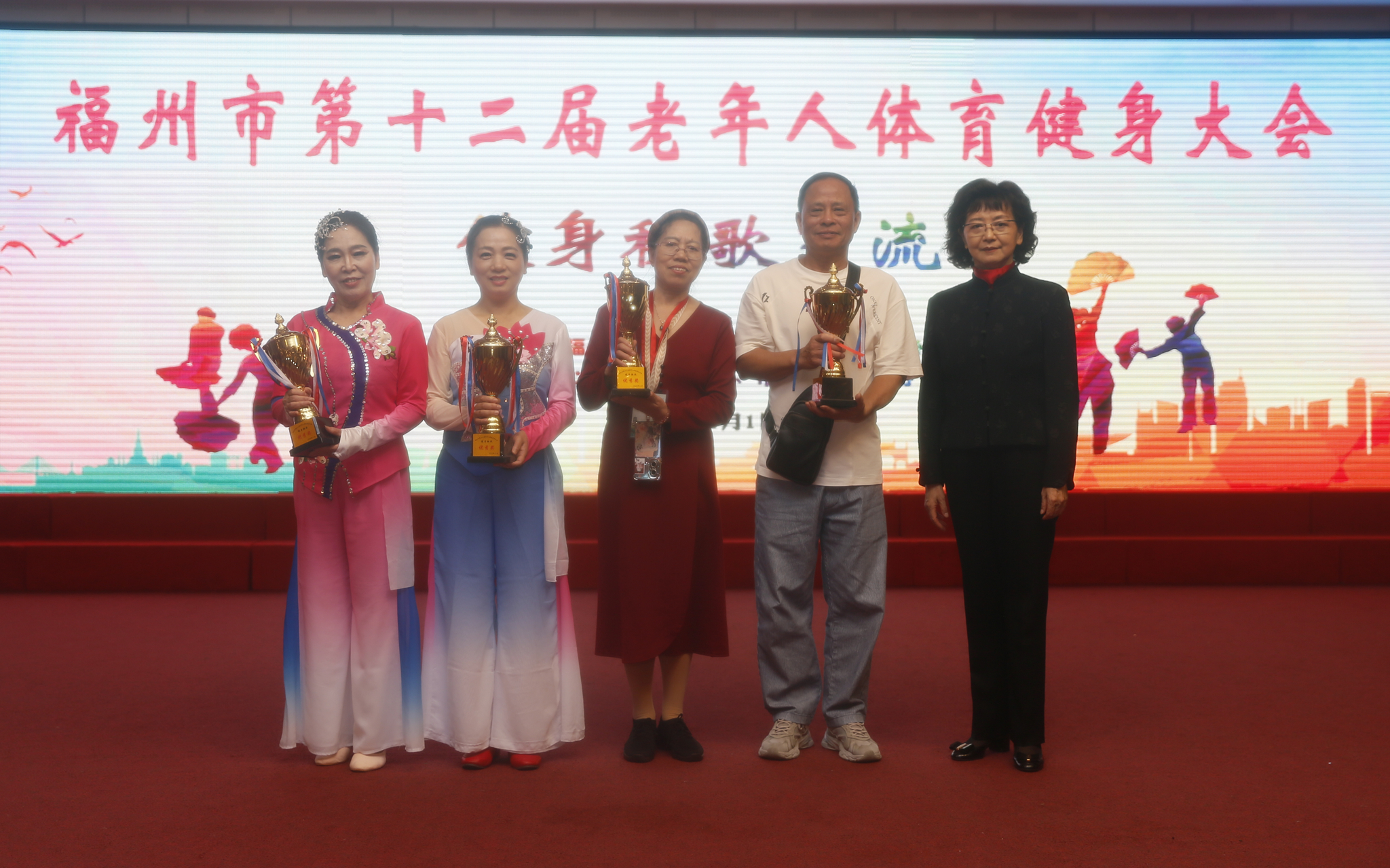经过一天精彩而有序的交流展示,鼓楼区、福清市、仓山区、市直机关、永泰县代表队荣获优胜奖;晋安区、闽清县、闽侯县、台江区代表队获得优秀奖。市老体协副主席潞江为获奖队伍颁奖。