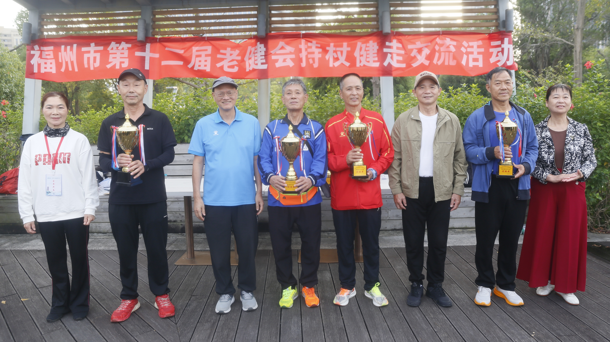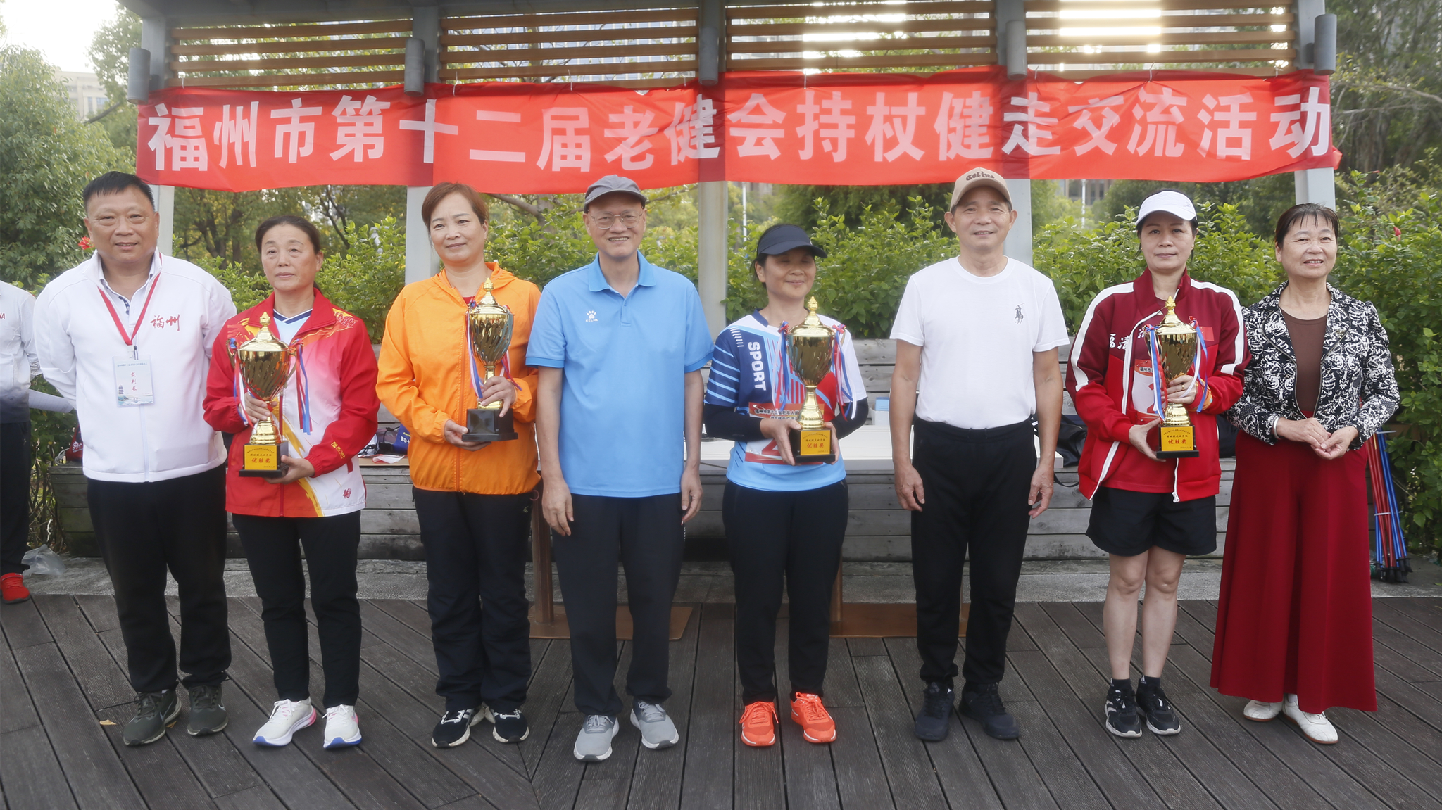 11月2日,由福州市体育局、市老体协主办,市体育运动学校、市社会体育指导员协会协办的福州市第十二届老健会持杖健走交流活动顺利举行。来自各县(市)区及市直机关的8支代表队,近100名运动员、裁判员和工作人员共同参与。福州市老体协常务副主席张涵,副主席王培德、高慧萍亲临现场观摩指导。