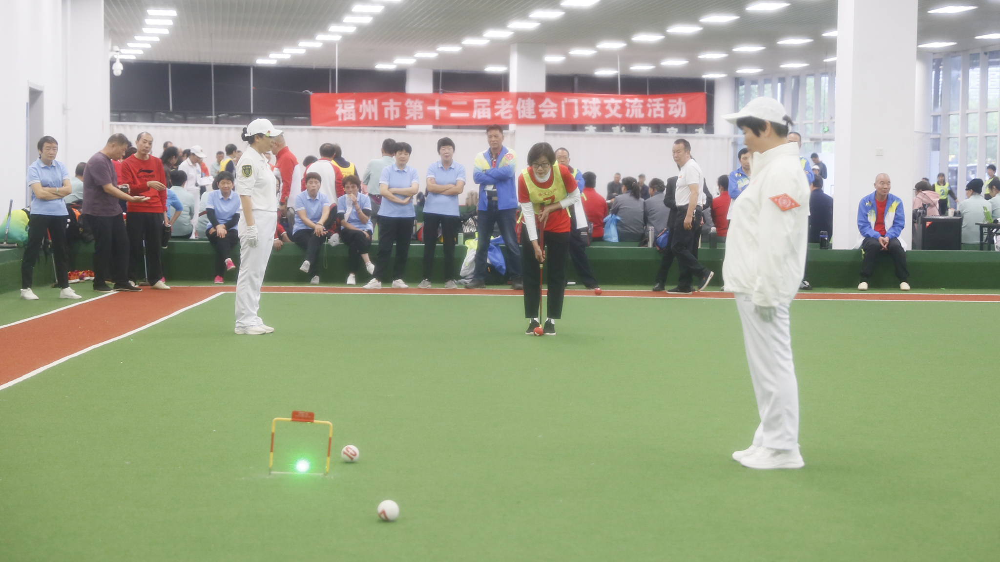11月11日-12日,市第十二届老健会门球交流活动在福州海峡奥林匹克体育中心室内门球场举行。本次活动由福州市体育局、市老体协联合主办,来自全市各县(市)区及市直机关的26支代表队,逾200名运动员、裁判员及工作人员齐聚一堂,共同见证了这场属于老年朋友的体育盛会。市老体协常务副主席张涵、副主席高慧萍到场指导。