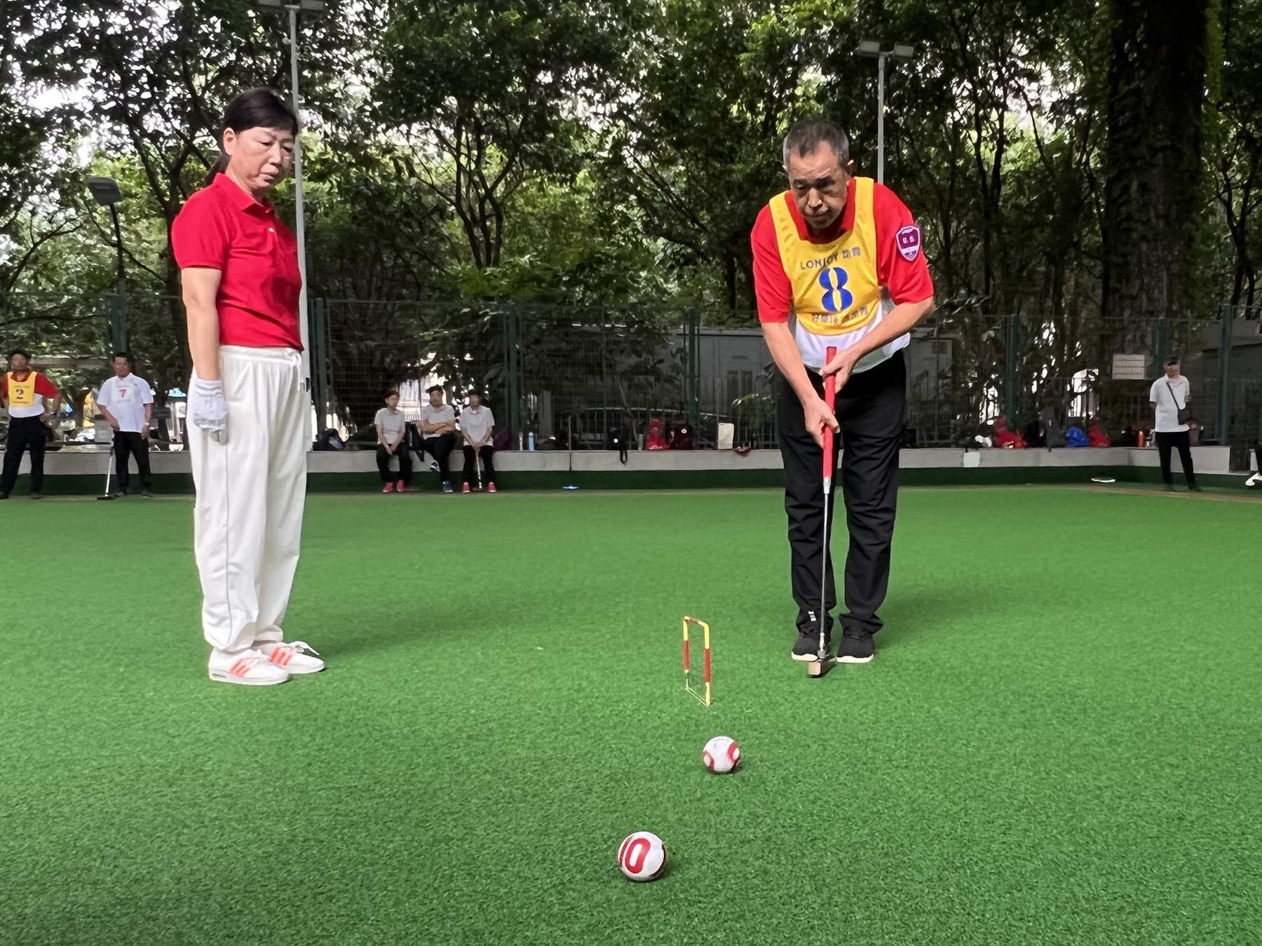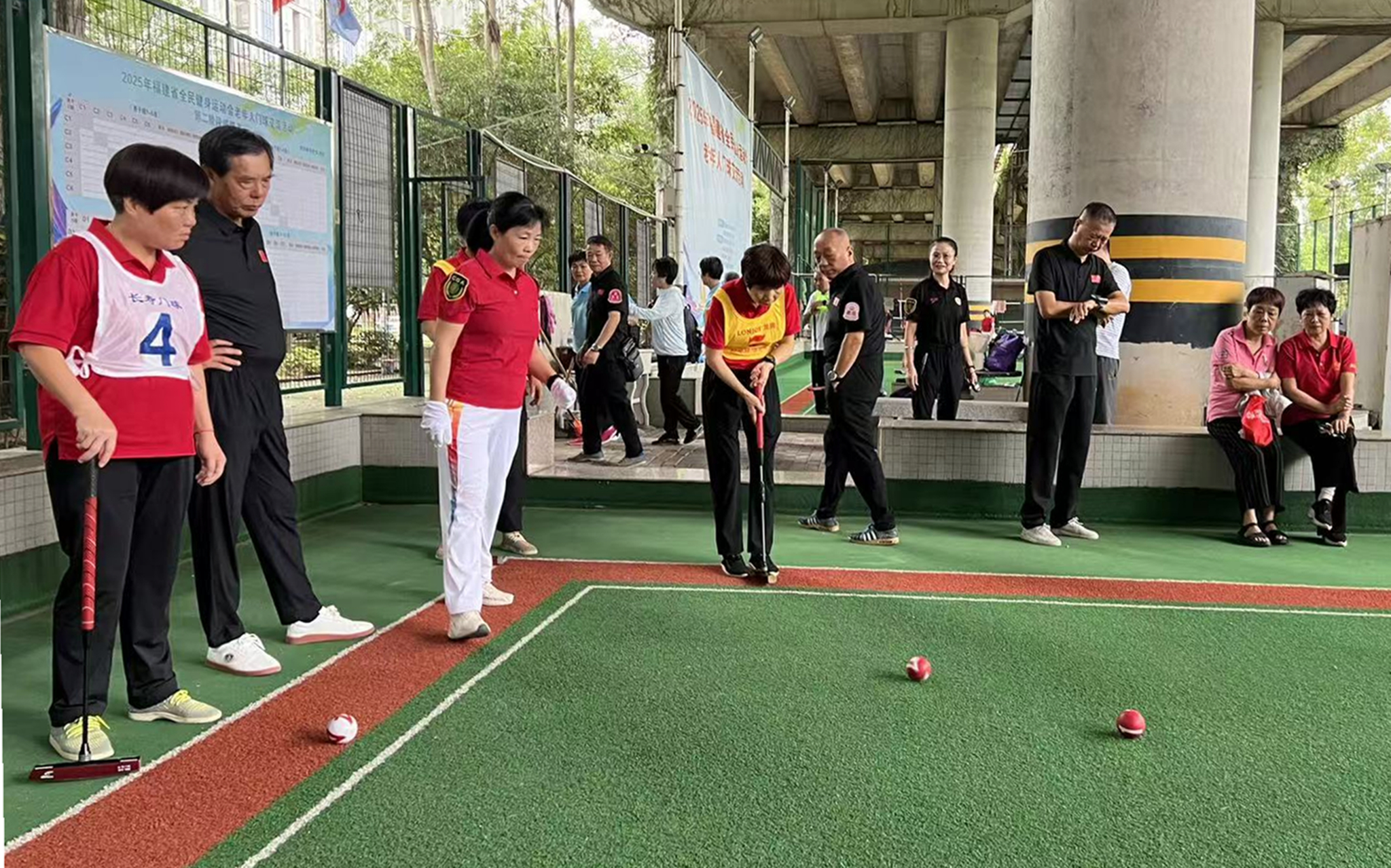 赛场上,选手们精神饱满,手持球杆精准瞄准、平稳击球,弯腰、挥杆、击球等一系列动作流畅自然。既有经验丰富的老将稳扎稳打,也有年轻选手灵活应对、勇于拼搏,每一次精彩得分都赢得观众阵阵掌声。赛场内外洋溢着“以球会友、乐在其中”的浓厚氛围。